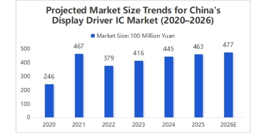 - In 2025, China’s display driver IC market size reached approximately RMB 46.3 billion, a year-on-year increase of 4.04%