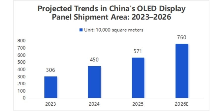 - In 2025, China’s OLED panel shipment area reached approximately 5.71 million square meters, a year-on-year increase of 26.9%