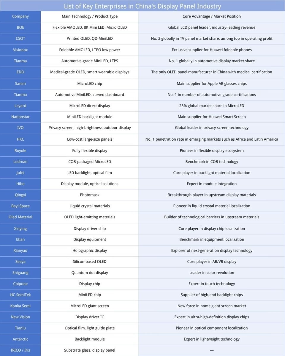 China’s display panel industry is rapidly growing, with strong upstream localization, expanding OLED adoption, and increasing demand across smartphones, automotive displays, and wearable devices.