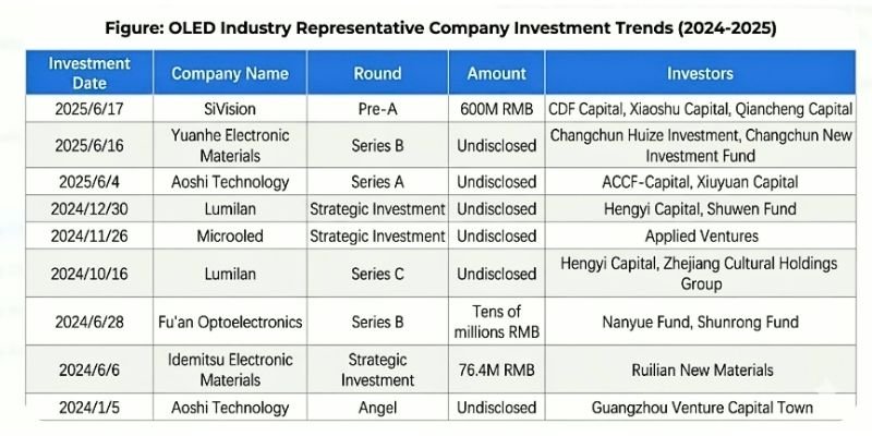 Recent investment activities indicate a shift toward consolidation and technological expansion. Leading firms are increasingly acquiring niche technology providers to bolster their IP portfolios or increasing capital in subsidiaries to accelerate the production of high-performance panels (such as LTPO and Tandem OLED)[Chart 6: 2024-2025 Key Investment Trends in the OLED Sector]