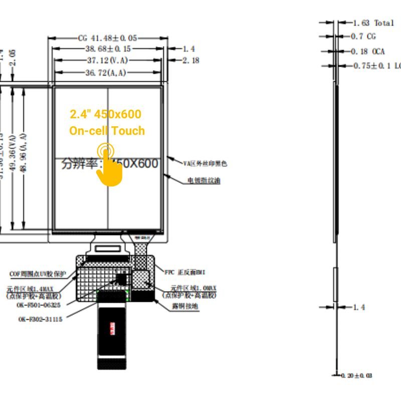 2.4-inch Touch OLED, 450×600, SPI/QSPI/MIPI, High Brightness with Cover glass