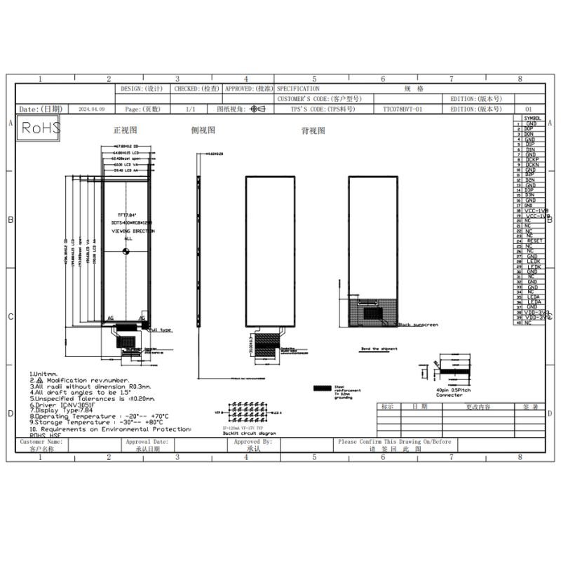 TTC078BVT-01 | 7.84 inch Bar LCD | IPS TFT | Hight Brigtness 850 cd/m2 | MIPI |